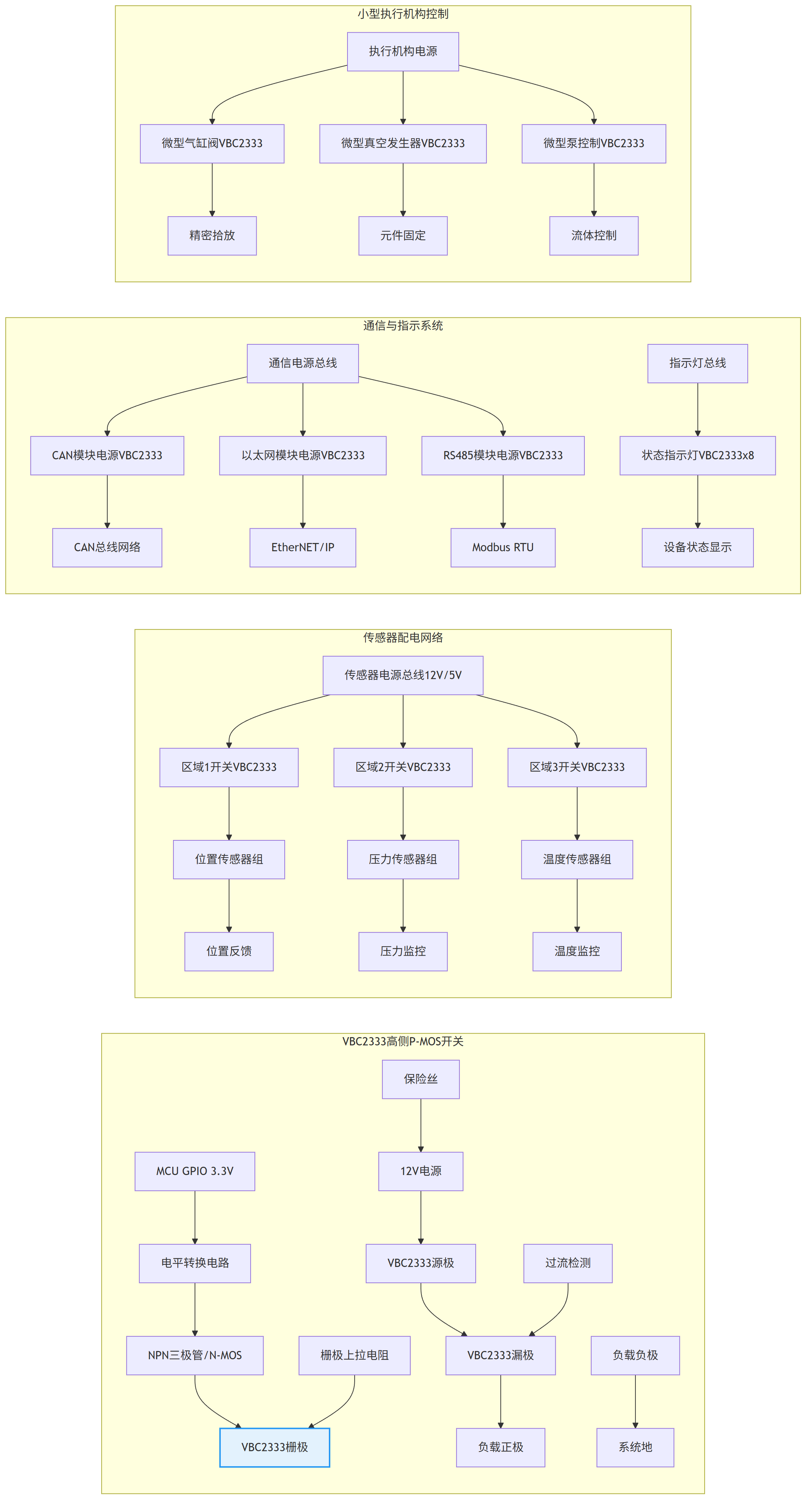 用于产线中大量传感器、指示灯、通信模块及小型执行机构的电源分配与开关控制,强调低功耗、高可靠性及紧凑布局。