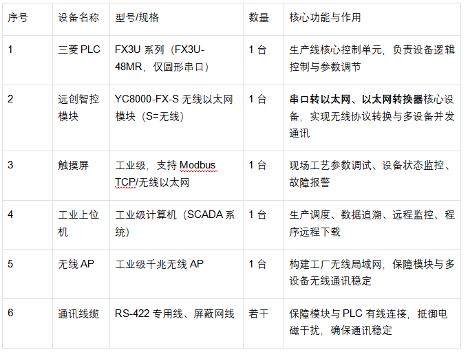 本项目通过引入远创智控YC8000-FX-S无线以太网模块 ,成功破解了三菱FX3U系列无网口PLC在自动化工厂应用中面临的协议不兼容、串口资源匮乏、有线布线受限、运维效率低下等核心技术难题。作为关键的串口转以太网、以太网转换器、以太网桥接器设备,该模块凭借其卓越的无线通讯能力、协议转换能力、多设备并发兼容特性及工业级高可靠性,实现了PLC与触摸屏、上位机的无缝无线联网与数据互通,彻底摆脱了有线布线的束缚。