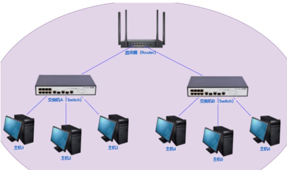 交换机可以将多台主机连接到一起,组成一个小型的局域网。路由器则可以将多个小型的局域网组建成一个更大的网络。