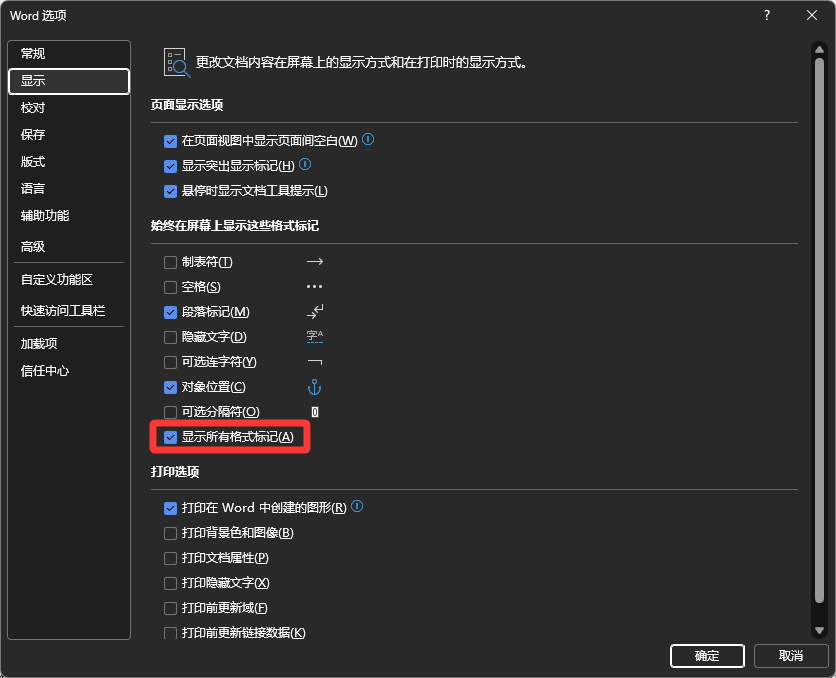 请你先在设置里打开显示所有格式标记