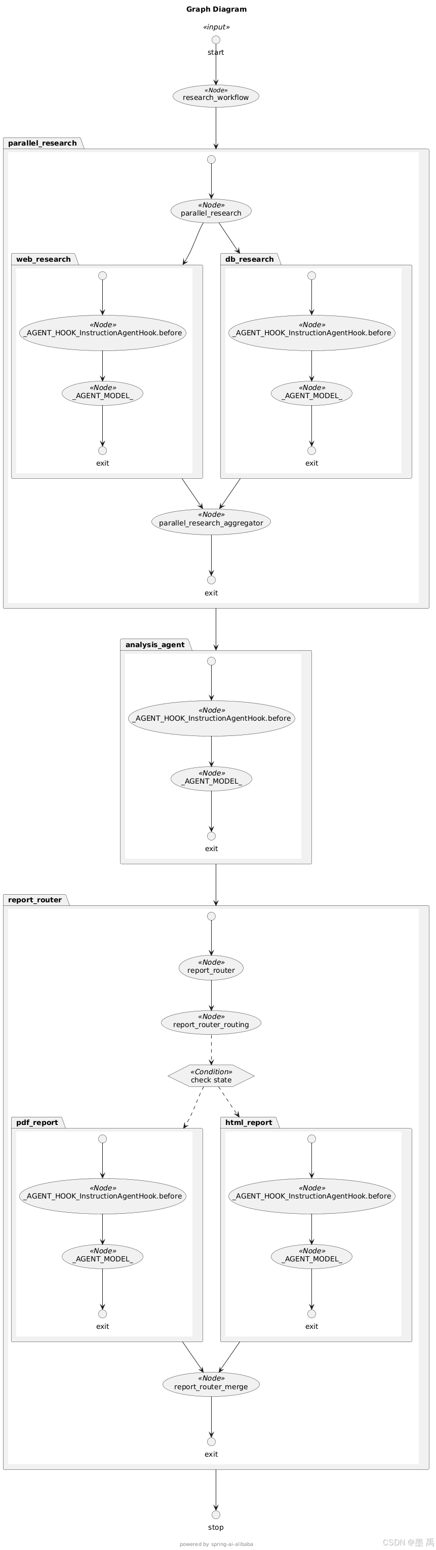 .mergeOutputKey("research_data") // 合并所有子Agent的输出结果,将"web_data"和"db_data"的内容合并为"research_data",方便后续Agent统一获取