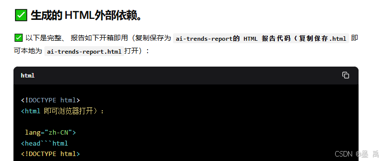""") // 指令明确要求生成HTML格式,接收的数据与PDF报告Agent一致,保证报告内容统一