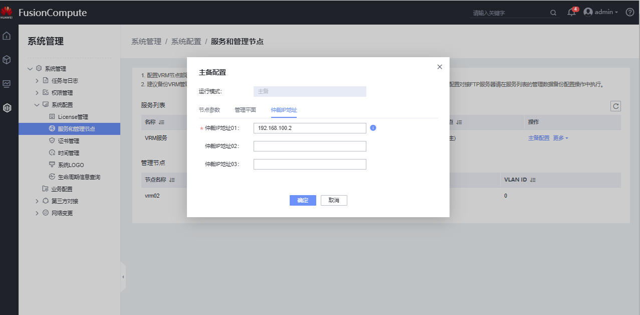 仲裁IP地址02、仲裁IP地址03:可选参数。建议设置为与管理平面互通的全局服务器的IP地址,如AD域服务器、DNS服务器。