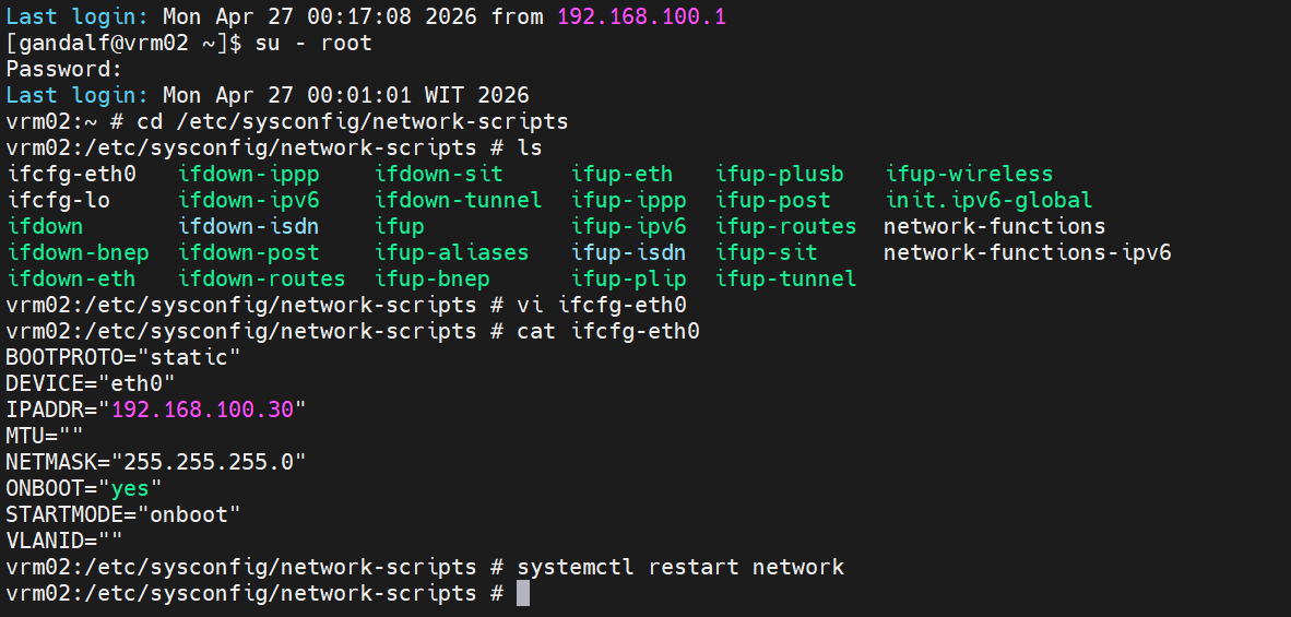 VRM001:/etc/sysconfig/network-scripts # systemctl restart network