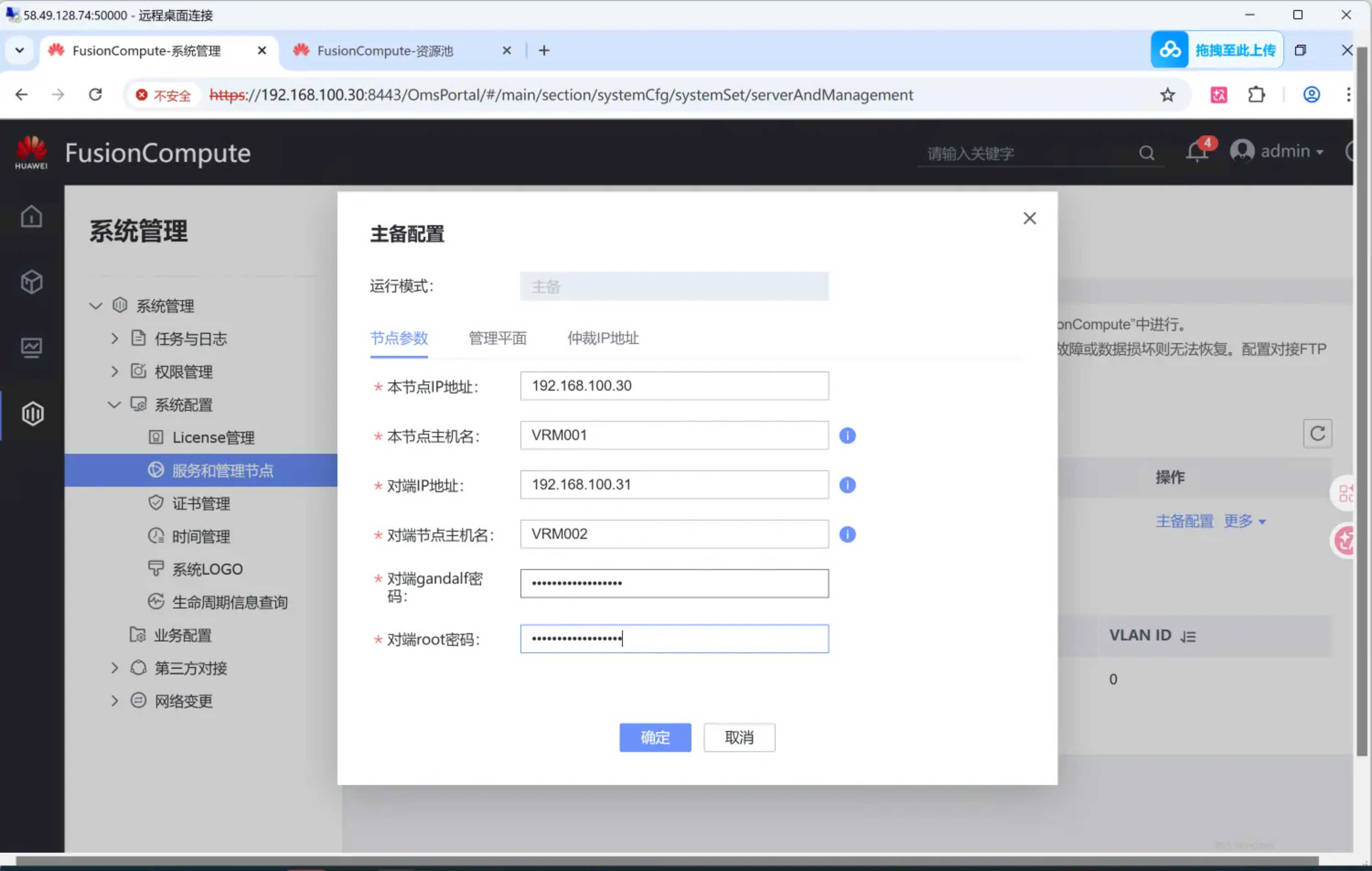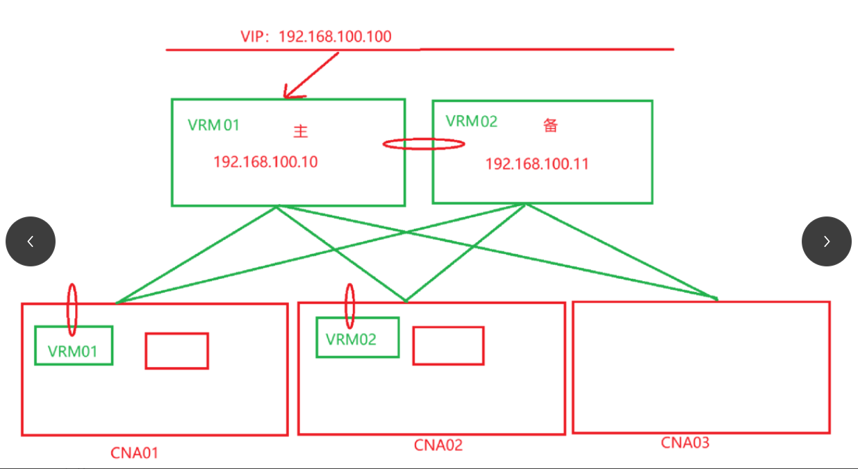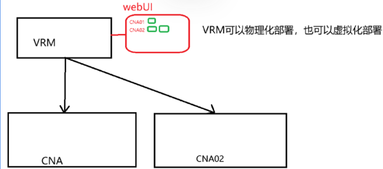 CNA至少是两台,另外一台VRM02要和VRM01放在不同的节点。VRM02就是CNA上面的一台虚拟机,创建这个虚拟机的时候注意,这个虚拟机的规格和VRM01保持一致,网络要能够正常互通。