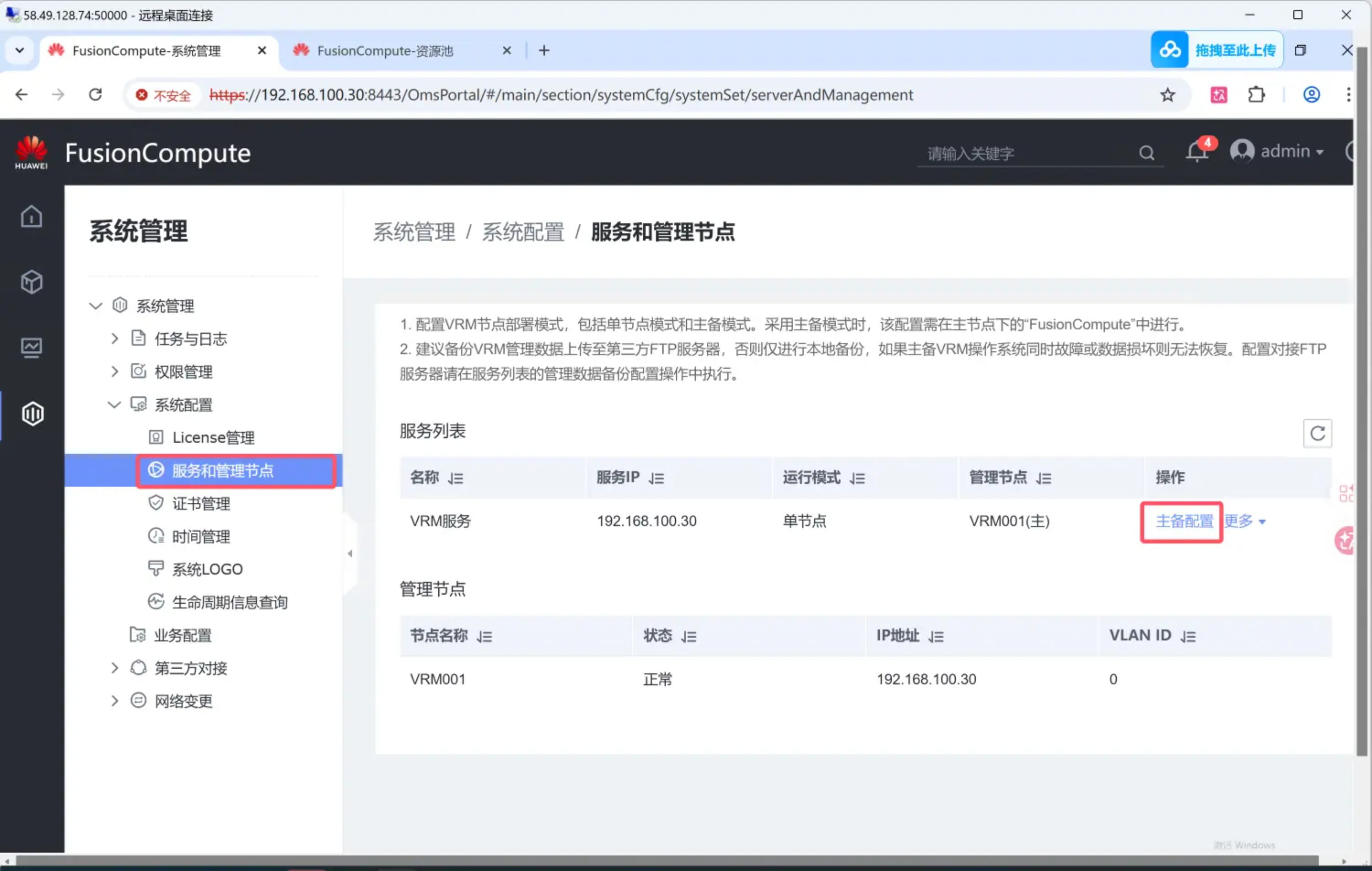 单节点的VRM扩展为主备