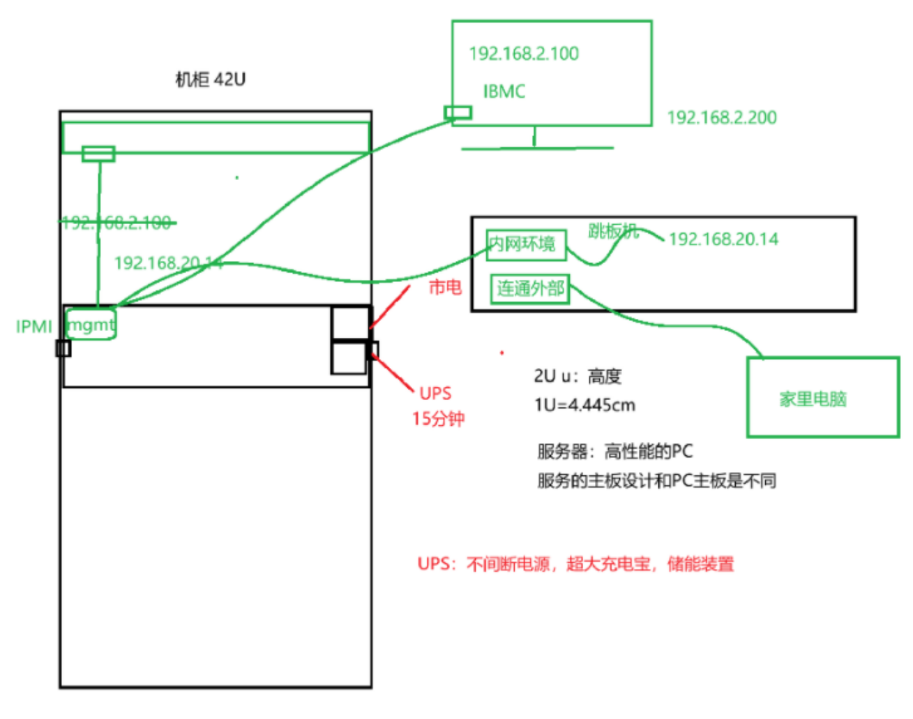 服务器背后都有一个口,mgmt,内置IPMI,可以通过IPMI监控服务器的后台情况,了解服务器的健康状态,也可以通过IPMI提供的这个接口给服务器做配置。