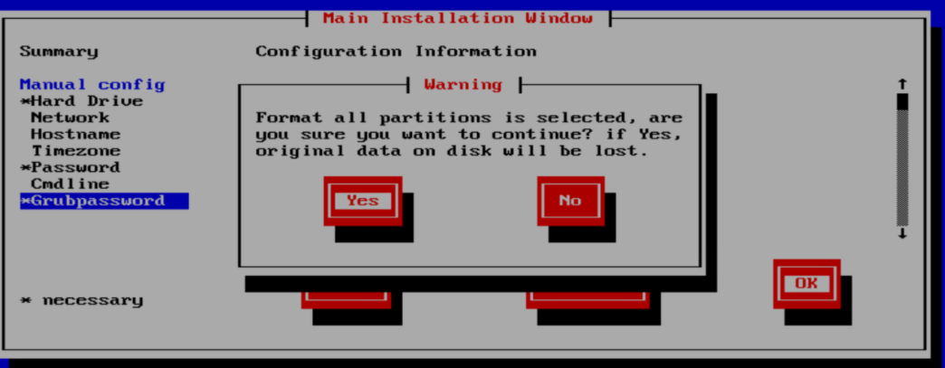 光标移动到ok键,按4次回车,开始安装系统。