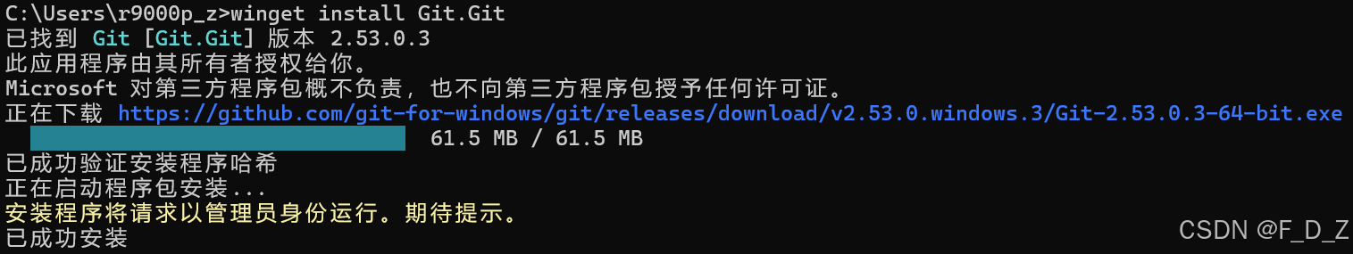 首先使用系统自带的包管理器 winget install Git.Git 安装 Git 版本 2.53.0.3,因为Claude Code 使用Git Bash来执行命令,所以需要先行安装Git。