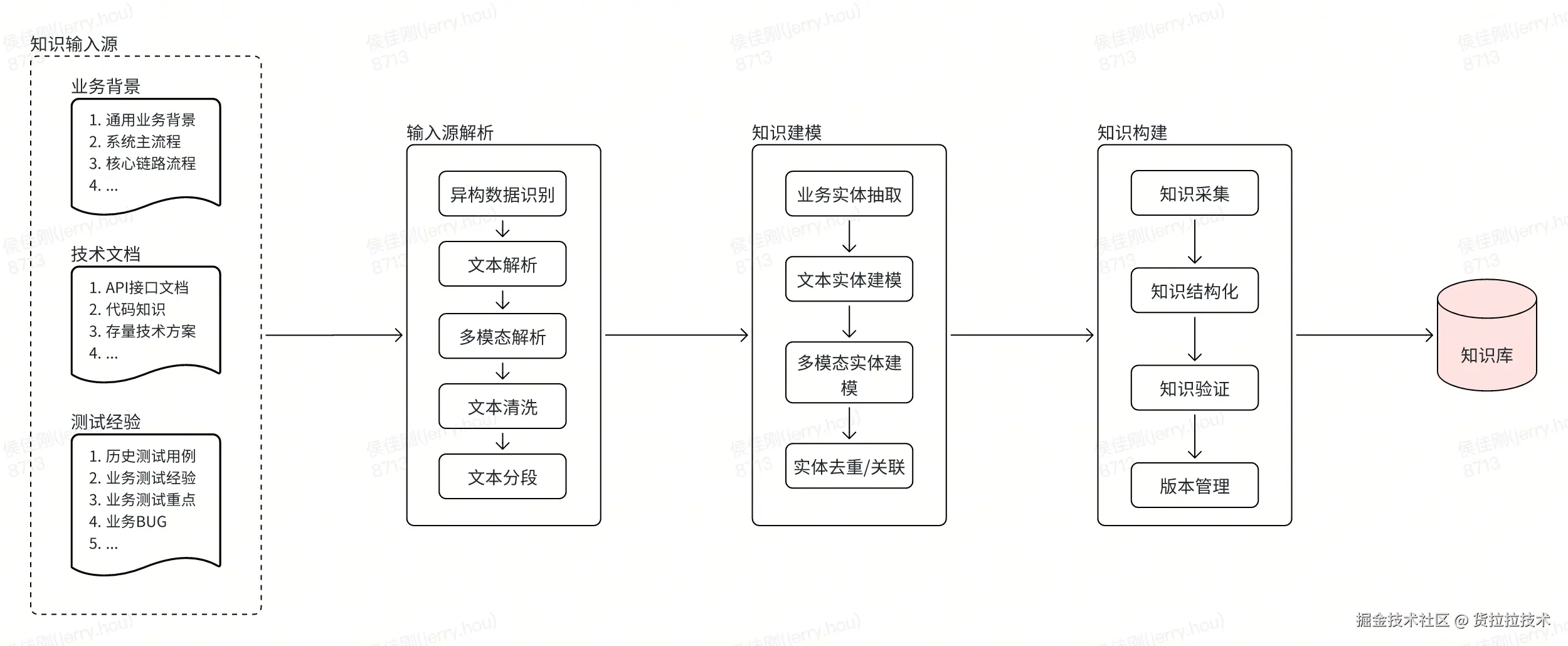 知识工程将 业务 背景、技术文档、测试经验统一纳入建模、验证和版本管理流程。