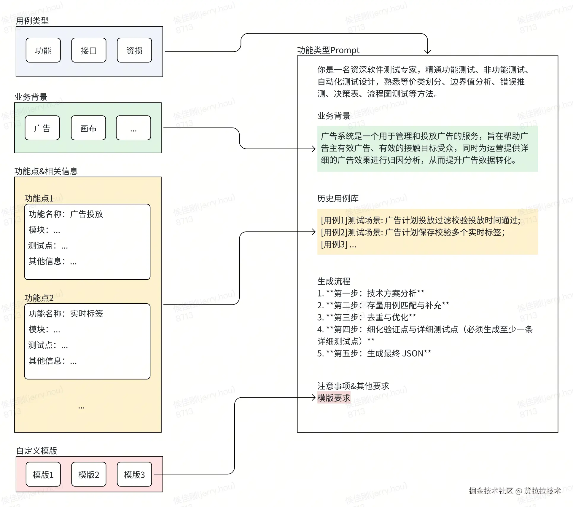 - 模板化 Prompt 阶段:按测试类型、业务背景、输出规范拆分组合;