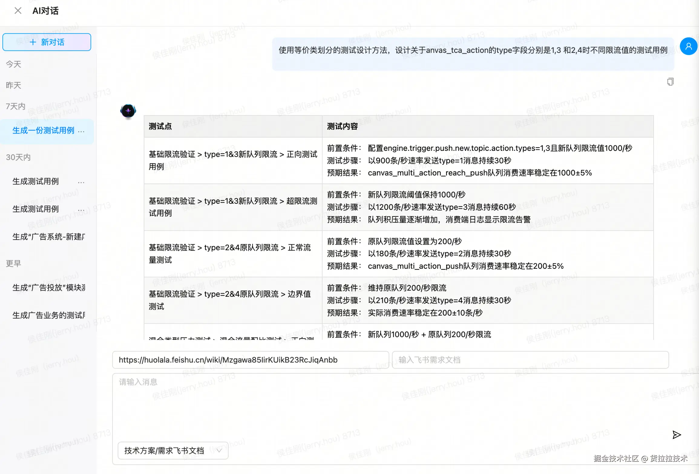 MVP 已支持对话式生成,输入自然语言后可快速产出测试点与测试内容草稿。