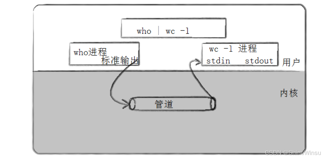 - 管道是什么 :操作系统内核在内存中开辟的一块固定大小的字节流缓冲区,通过