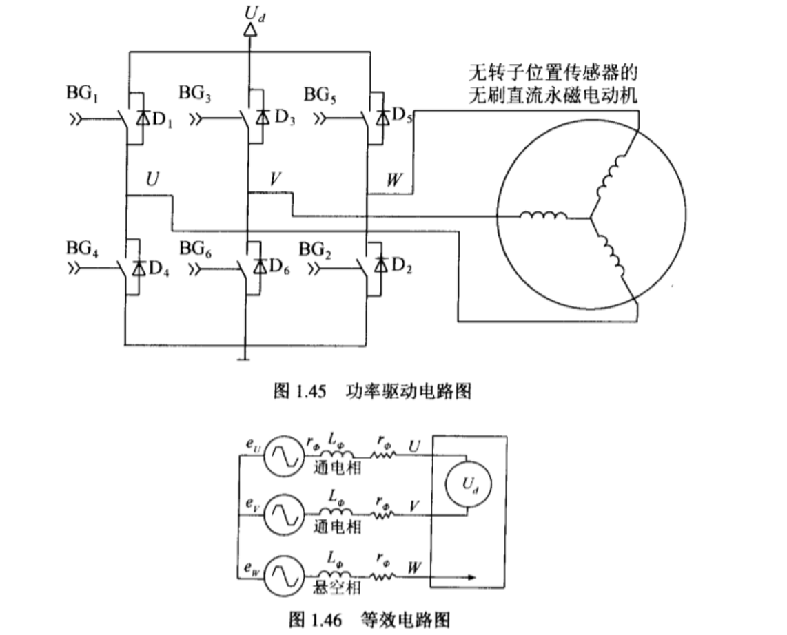 - 第二步(t=60∘+t=60^{\circ+}t=60∘+) :BG1,BG6BG_1, BG_6BG1,BG6 导通。电流路径:电源正极 →BG1→U→W→BG6→\rightarrow BG_1 \rightarrow U \rightarrow W \rightarrow BG_6 \rightarrow→BG1→U→W→BG6→ 电源负极。(V 相悬空)