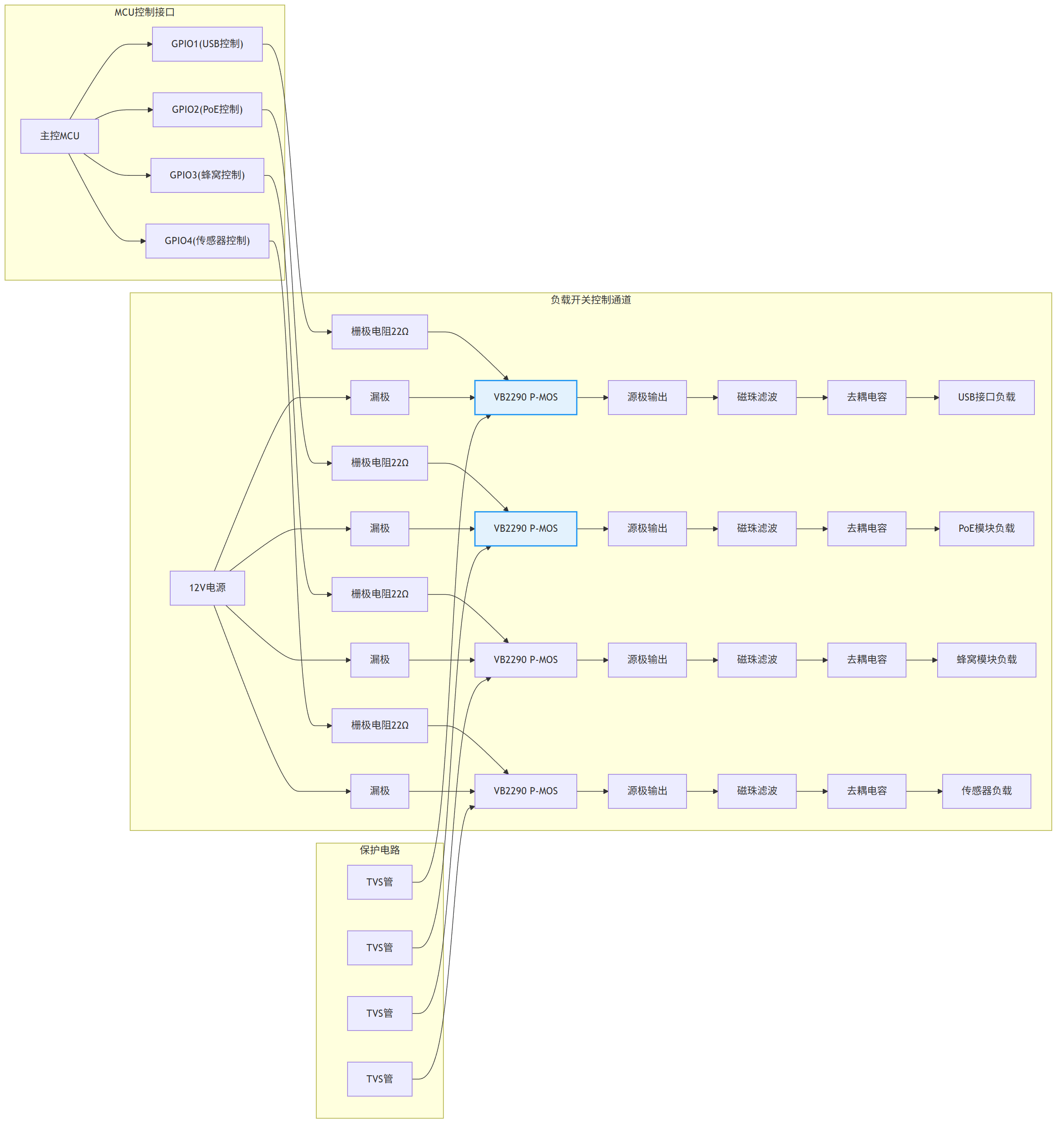 过流/短路保护:核心供电路径(VBQF1638)需在控制器端设置精确的过流保护;负载开关路径(VB2290)可考虑集成限流功能的开关或外置检测电路。