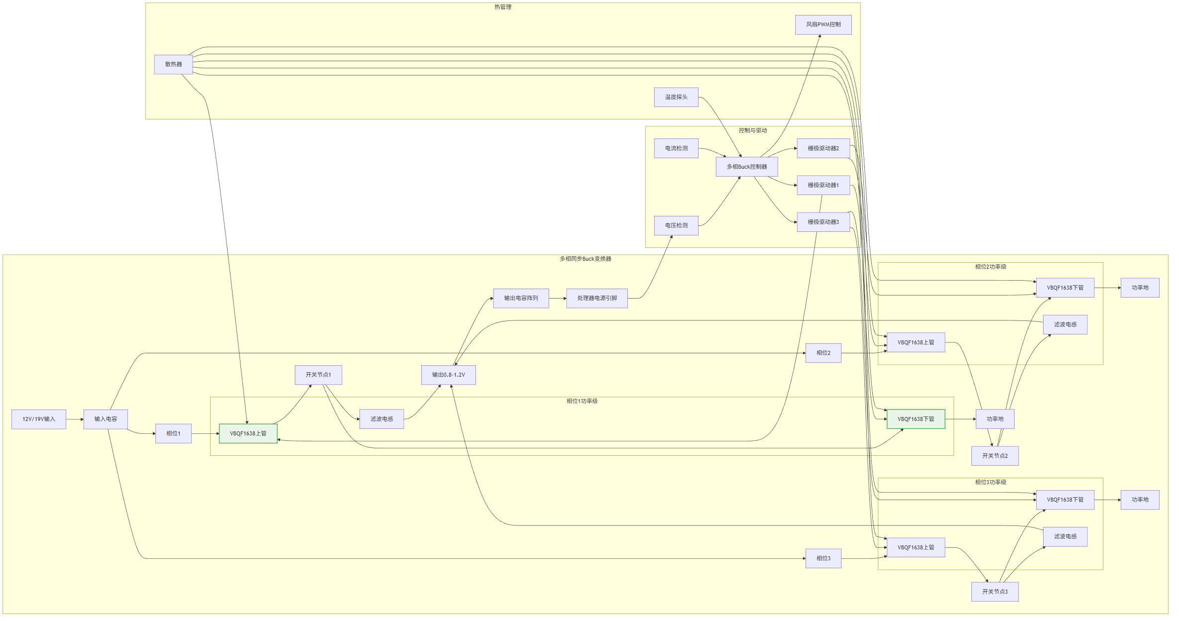 选型注意:确认处理器最大电流及动态负载要求,预留足够电流裕量;需搭配高性能多相控制器或大电流驱动IC,并做好功率回路布局与散热设计。