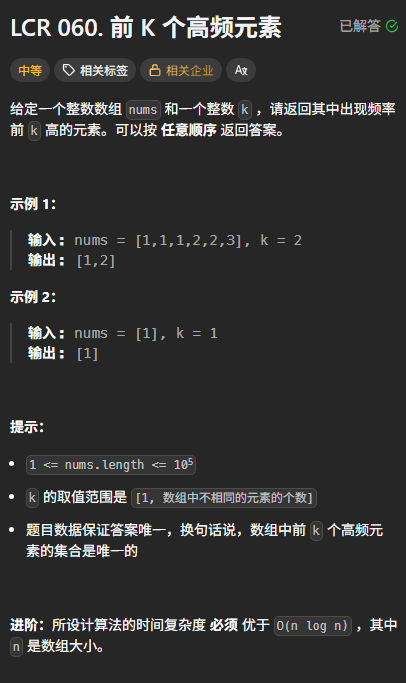 public:vector<int> topKFrequent(vector<int>& nums, int k) {