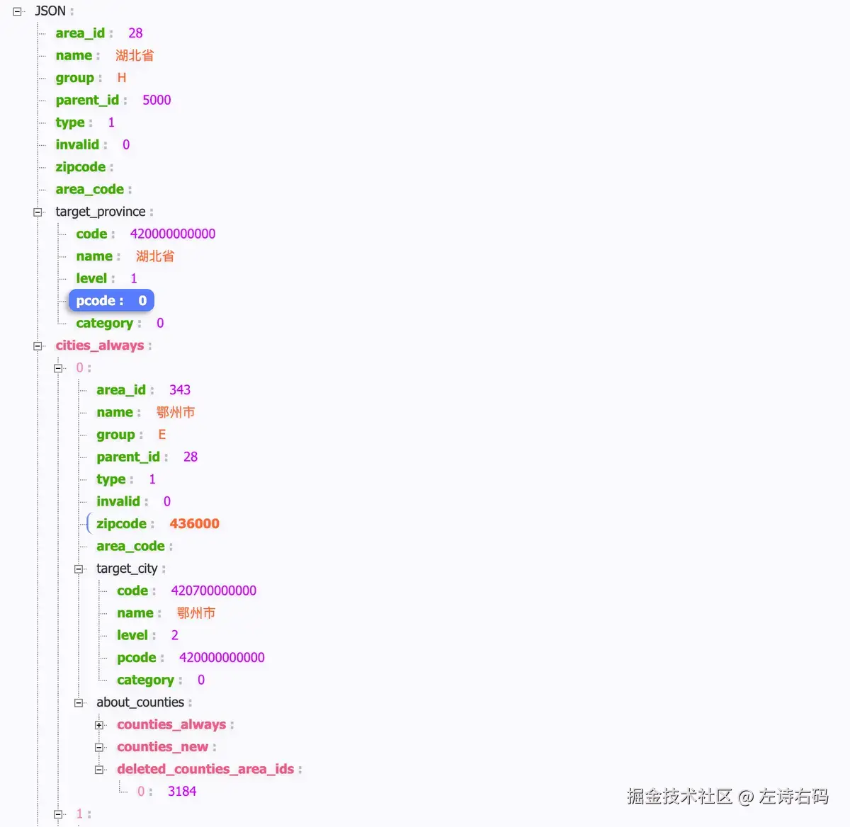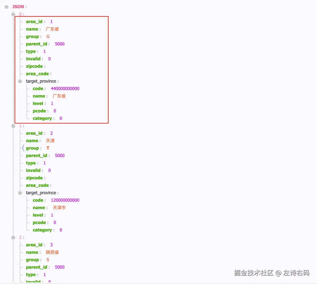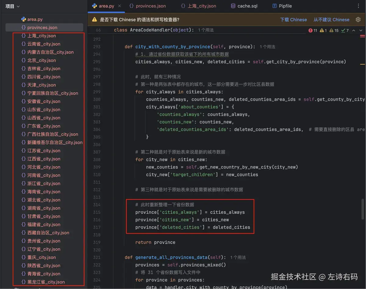 为了方便我检查数据的准确性,我将省份关联的数据以 json 的形式做了一下保存