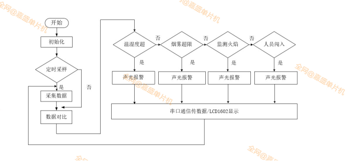 STM32温湿度防盗安防报警器仿真设计功能说明: