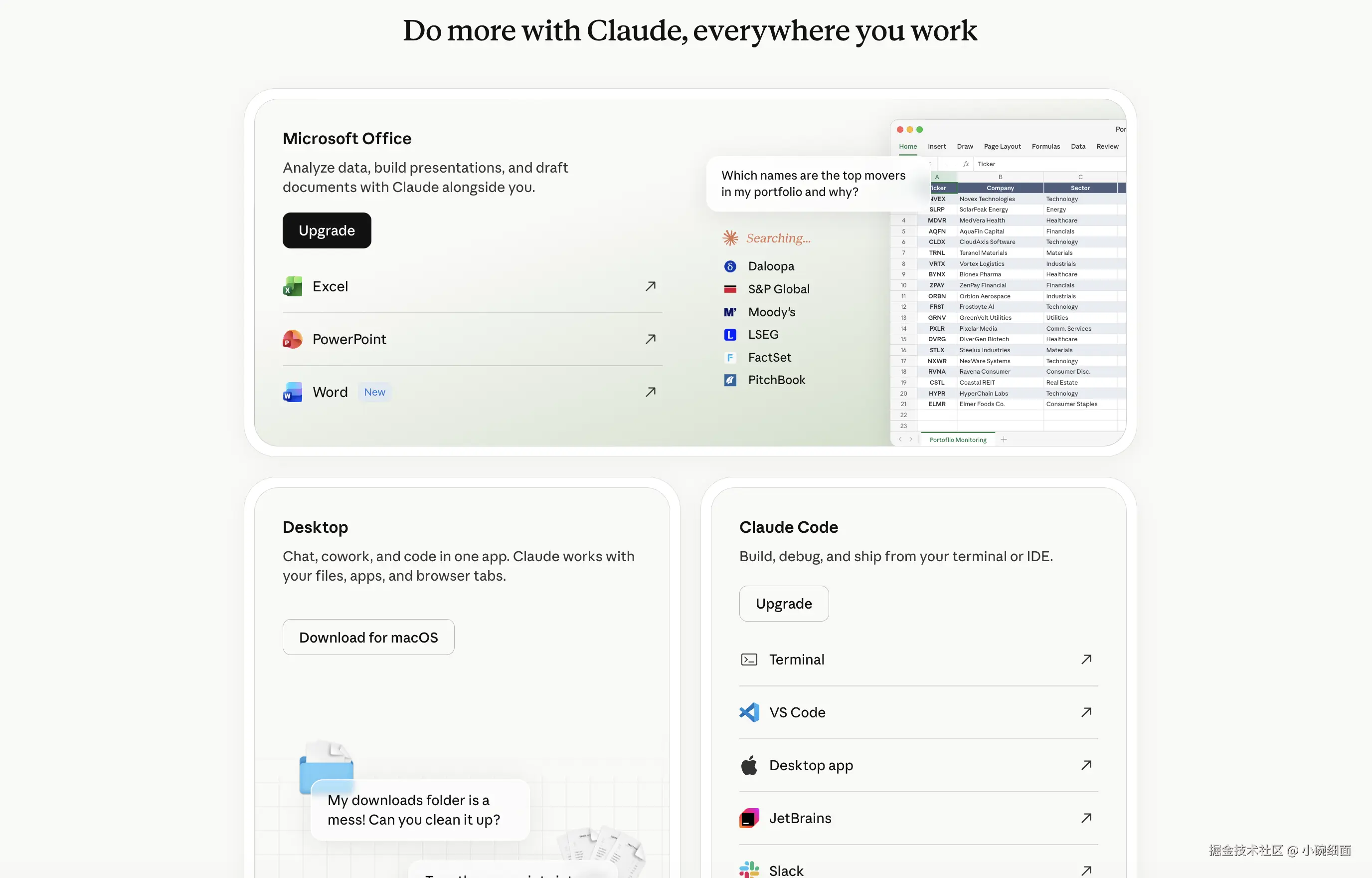 - Claude Desktop 仍然提供 Cowork 和 Code 这类桌面端能力;