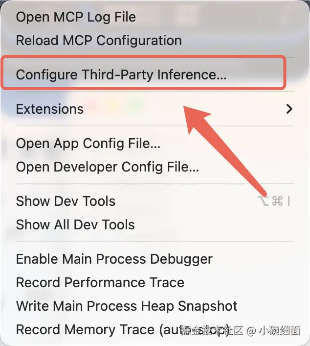 Developer → Configure third-party inference。 - 选择