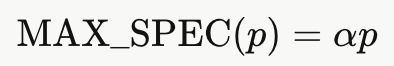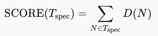 Speculation Tree Scoring. **推测树评分。**至此,我们已经讨论了如何在给定后缀树和模式长度 p 的情况下获得一棵推测树。然而,SuffixDecoding 维护着两棵后缀树------全局后缀树【the global suffix tree】和每请求后缀树【the per-request suffix tree】,每棵树都对应多种 p 的取值选择。为了最终得到一棵推测树,我们针对全局后缀树和每请求后缀树,在一定范围的 p 值下分别构建推测树。随后,依据如下评分函数从中选出唯一一棵推测树: