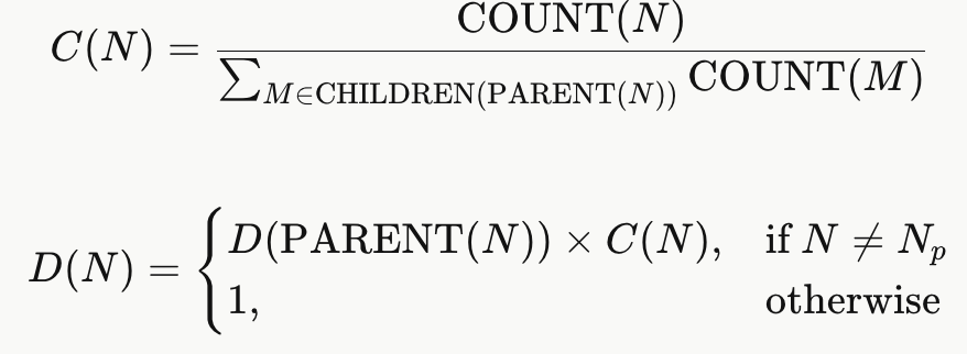 其中,COUNT(N) 是节点 N 在参考语料库中出现的次数,可在构建后缀树时计算得出。从推测子树中的单个节点 出发,我们遍历所有叶节点的全部子节点,并将 D(N) 值最高的节点 N 加入子树。重复上述过程,直到子树的规模达到预设的上限 MAX_SPEC 为止。