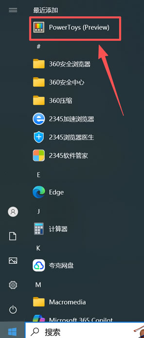 13)点击桌面左下角的 Windows 图标,找到 PowerToys ,左键长按拖到桌面: