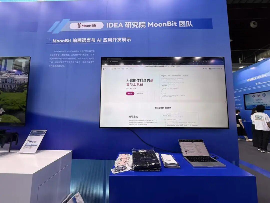 MoonBit 展台也吸引了多位参会嘉宾驻足了解,不少企业代表就 AI 原生编程语言、形式化验证以及高可靠软件开发等方向,与团队进行了现场沟通。