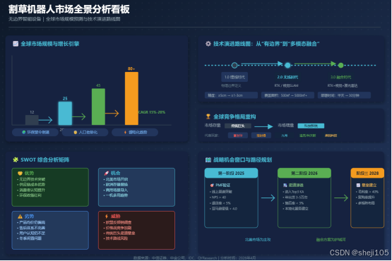 | 优势(S) | ① 全球渗透率极低(2%-5%),增长天花板极高;② 无边界技术突破驱动产品体验质变,品类进入技术红利期;③ 环保政策驱动燃油替代刚性需求;④ 中国供应链完整,核心部件国产替代已完成,成本优势显著;⑤ 消费者对智能庭院设备接受度快速提升 |
