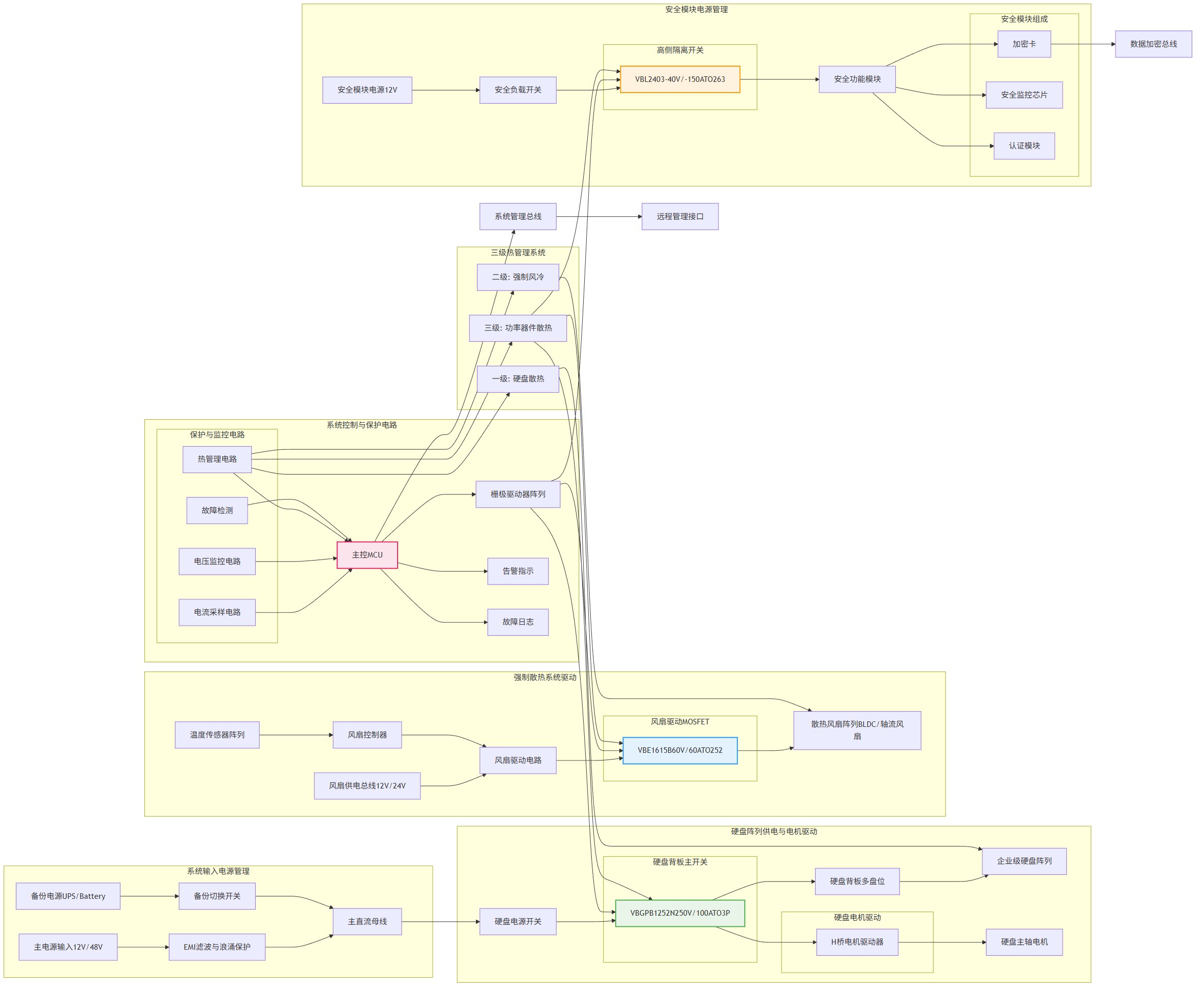 图1: 高端安全存储系统方案与适用功率器件型号分析推荐VBE1615B与VBM16R20与VBGPB1252N与VBL2403与产品应用拓扑图_01_total