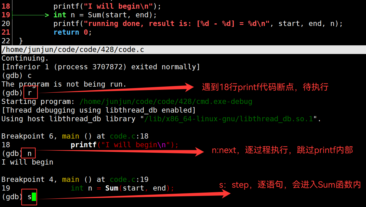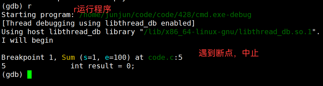 [7.44 run / r ------ 运行程序,遇到断点中止,没断点就结束](#7.44 run / r —— 运行程序,遇到断点中止,没断点就结束)