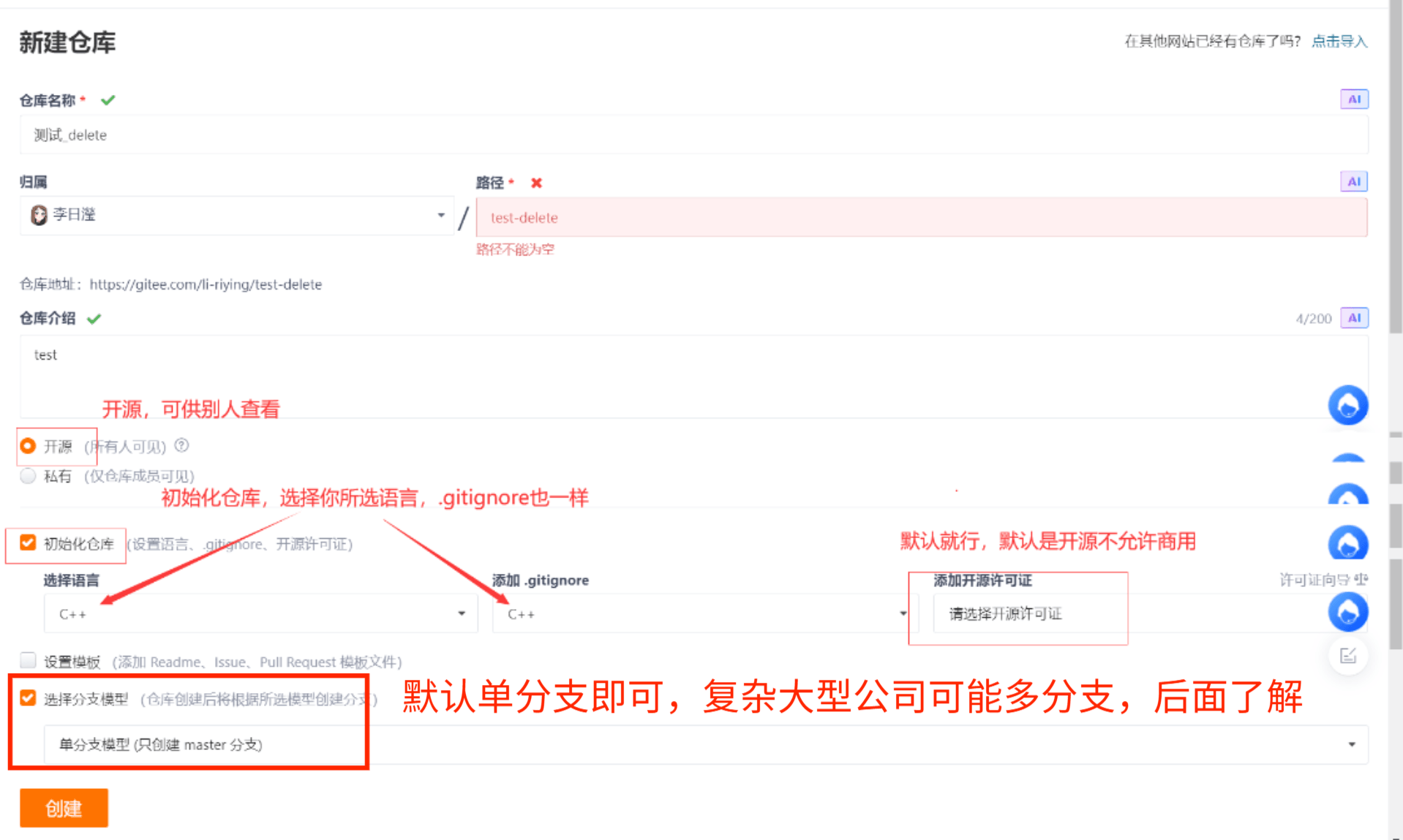 [2.1 gitee 远端 创建仓库](#2.1 gitee 远端 创建仓库)