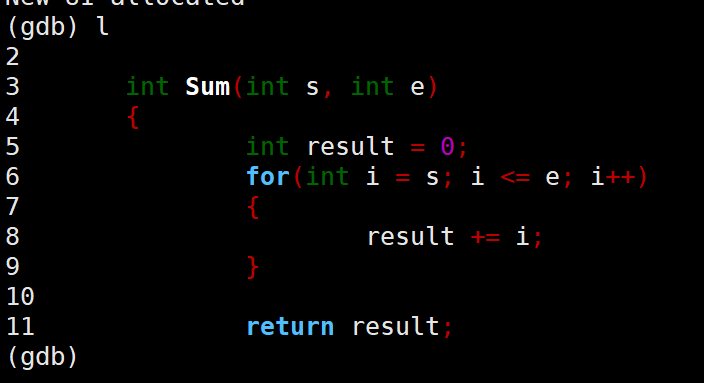 列出指定文件的源代码 | list / l mycmd.c:1 |