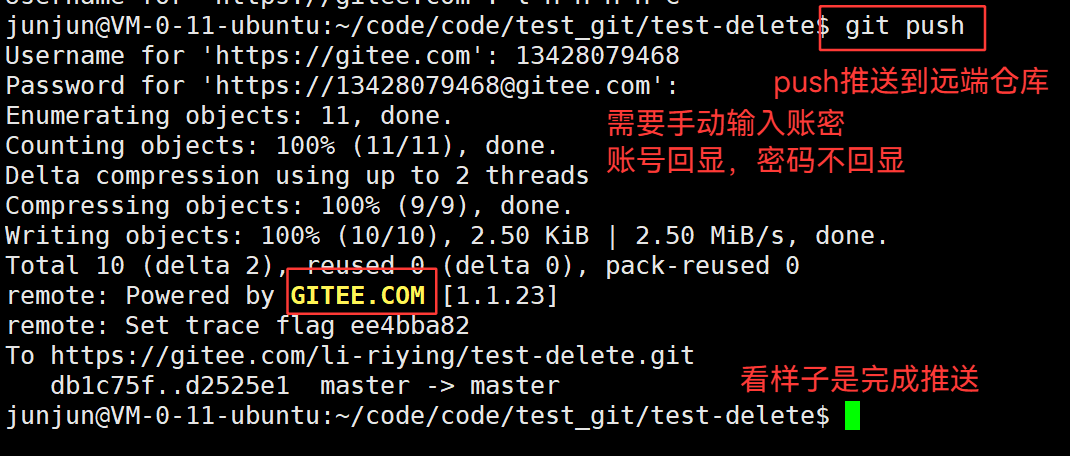 git push ------ 将本地仓库修改内容,推送到远端仓库同步