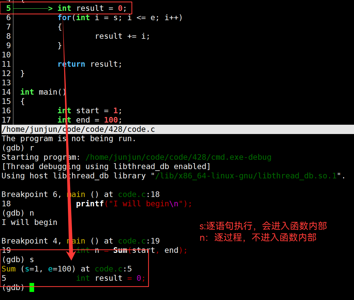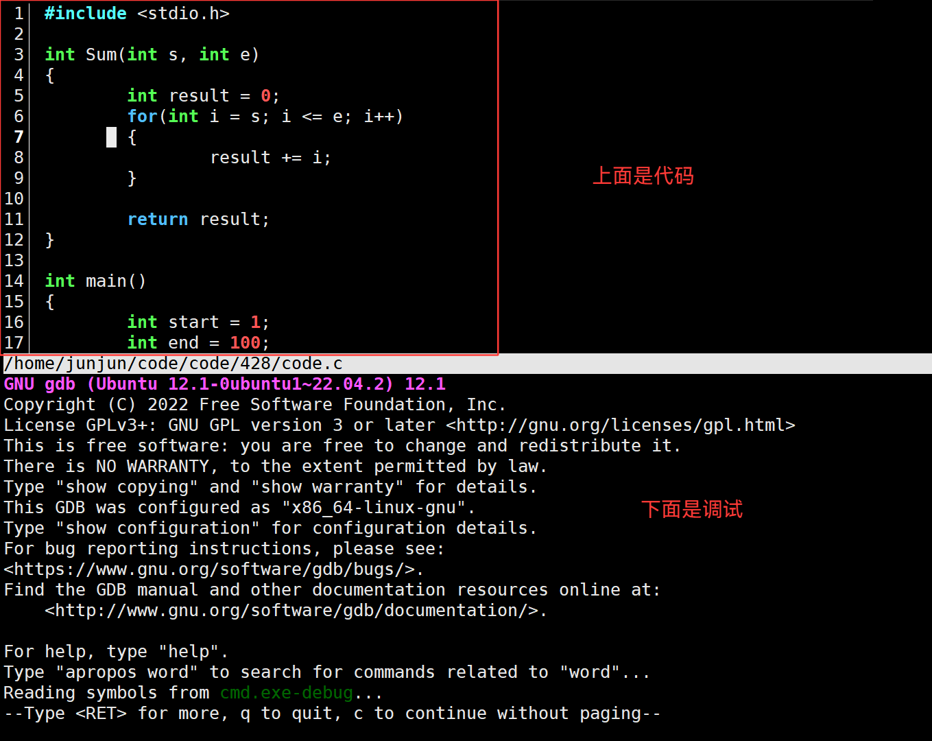gdb 和 cgdb 内部指令基本一致,但cgdb是可视化版本,比gdb好观察,所以接下来主要讲解cgdb的用法