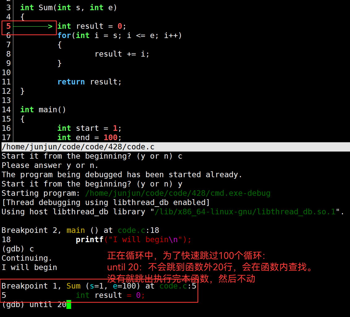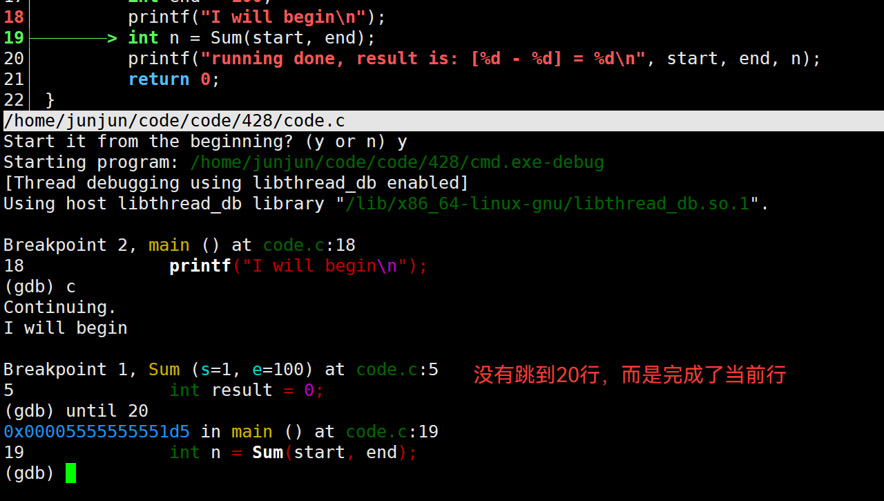 [7.415 until [行号] ------ 快速跳过栈帧内的循环,最多只能执行完当前函数,不会跳转函数外其他行](#7.415 until [行号] —— 快速跳过栈帧内的循环,最多只能执行完当前函数,不会跳转函数外其他行)