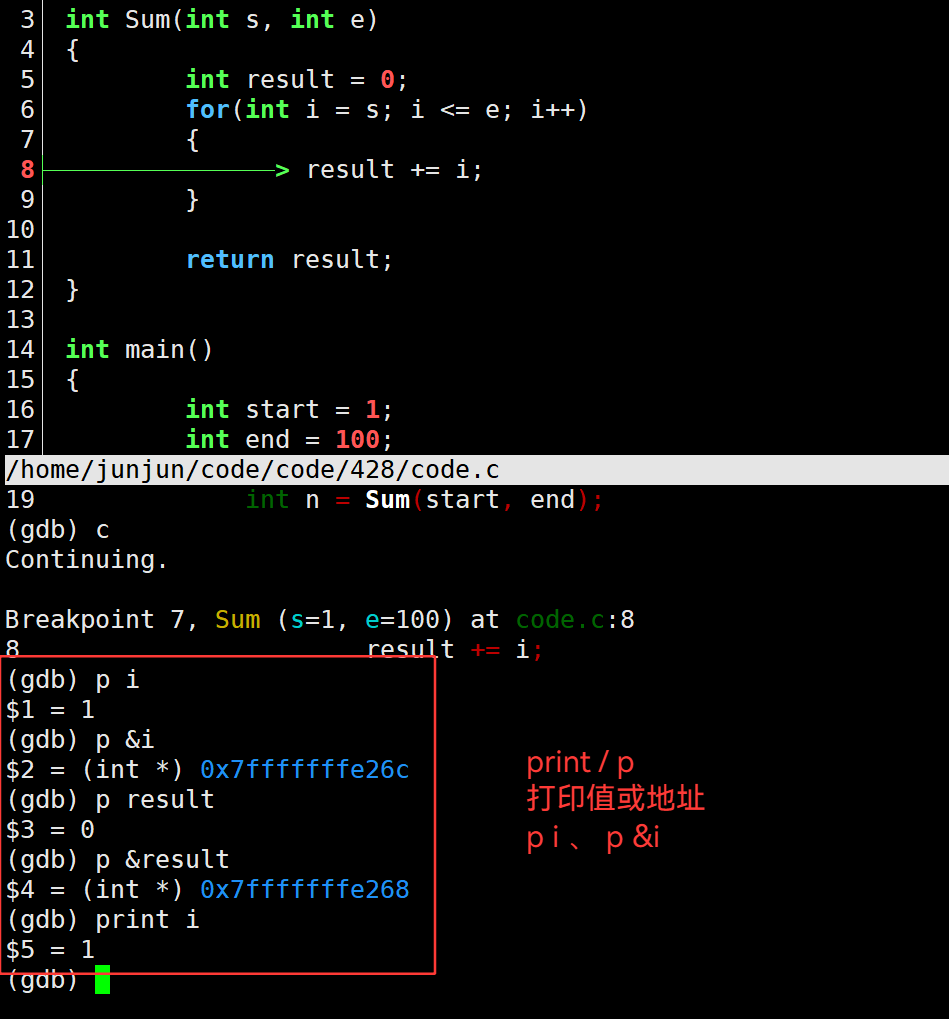 [7.412 print / p [&][变量名] ------ 打印变量的地址或值](#7.412 print / p [&][变量名] —— 打印变量的地址或值)