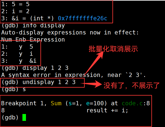 [7.413 display [&][变量名] ------ 长时间展示变量内容或地址,便于观测变化](#7.413 display [&][变量名] —— 长时间展示变量内容或地址,便于观测变化)
