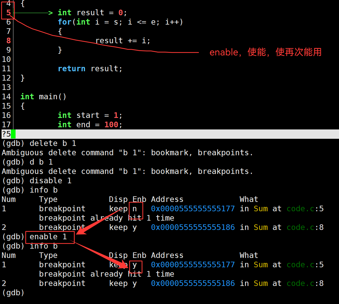 [7.47 enable [断点编号] ------ 启用断点,使能](#7.47 enable [断点编号] —— 启用断点,使能)
