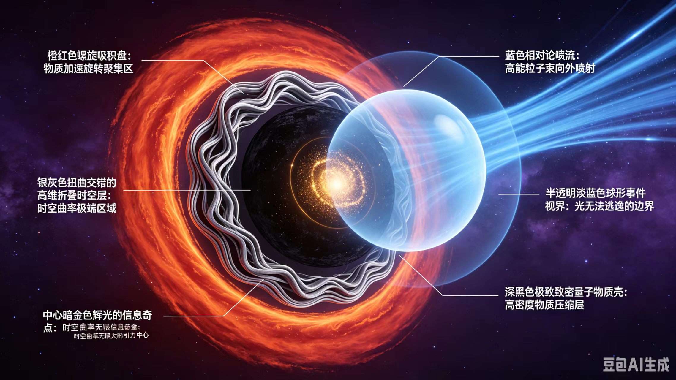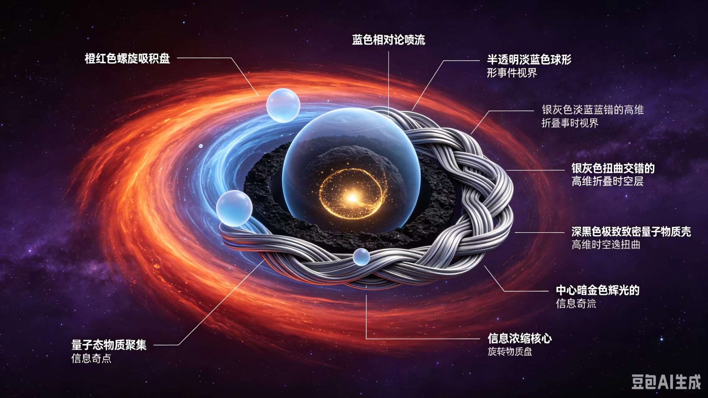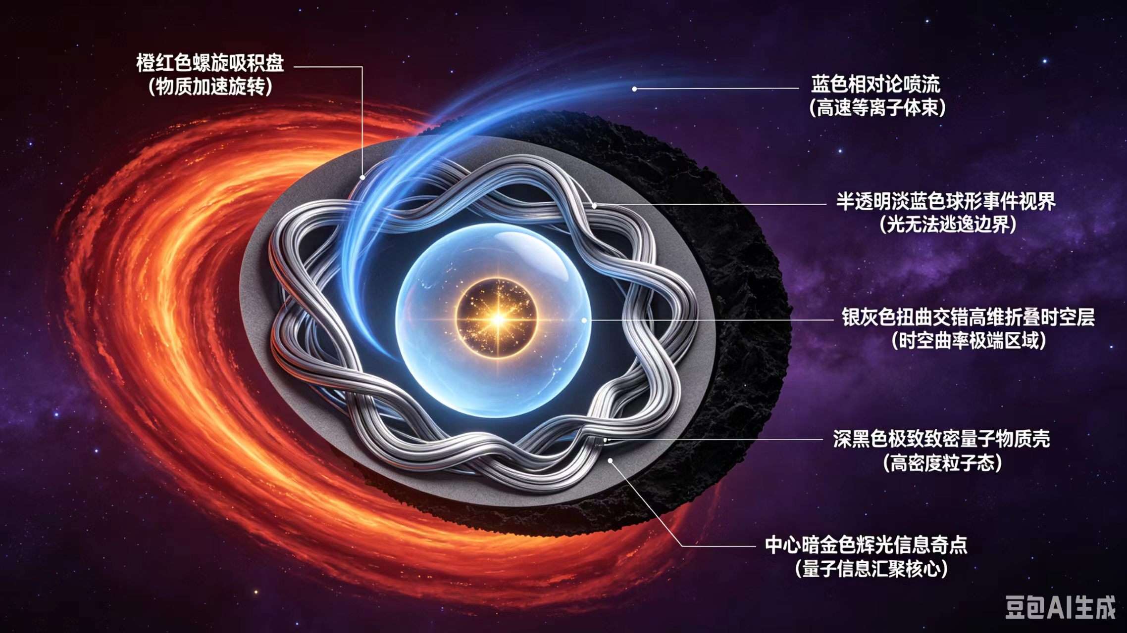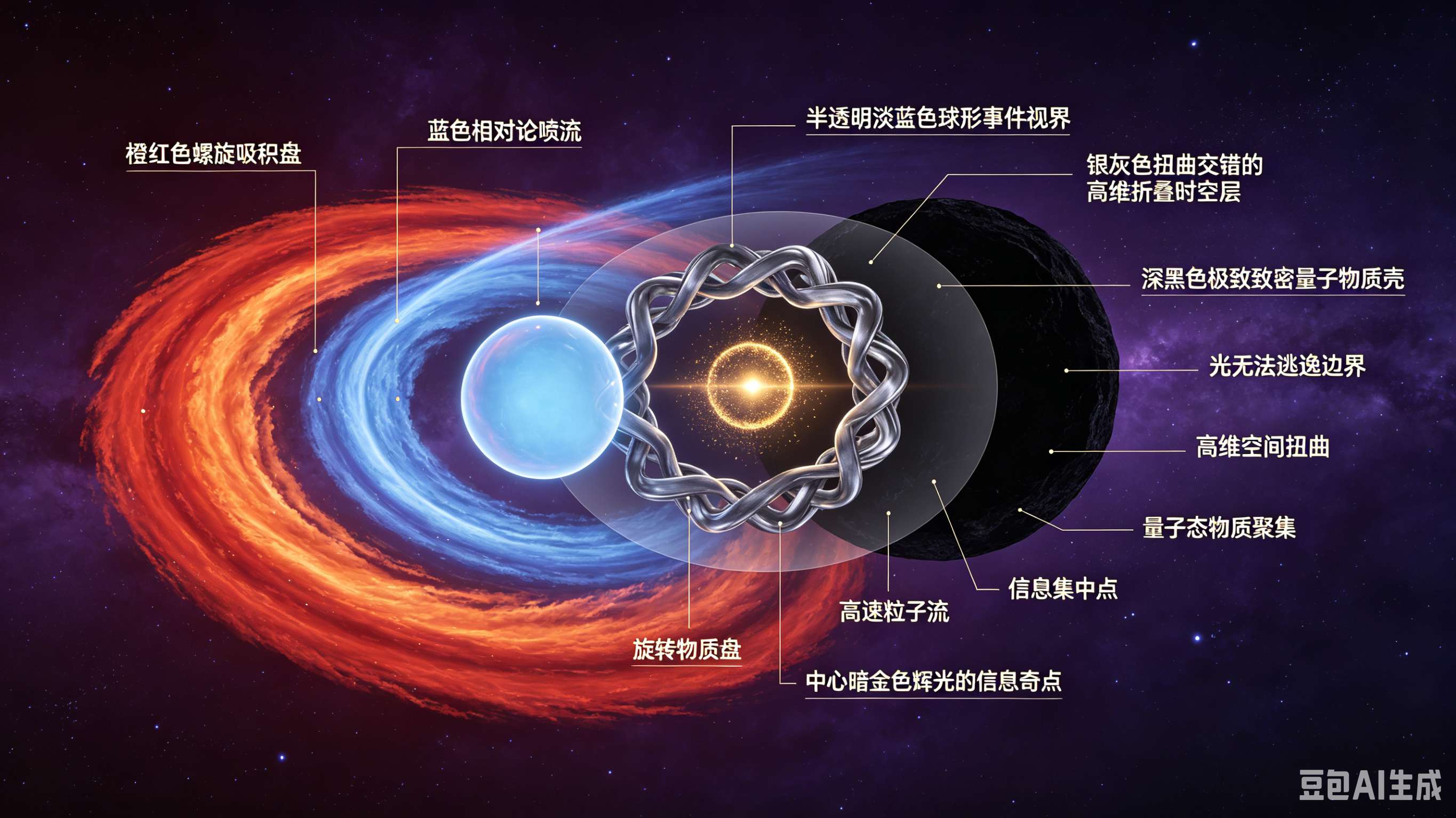 完全基于「全域数学三元本源公理」绘制,超越现代天体物理认知。 - 黑洞内部结构: