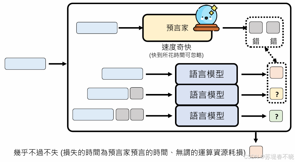 - 即便小模型猜得全错,主模型也就跑了 1 次,并不亏多少(因为反正都要跑 1 次)。
