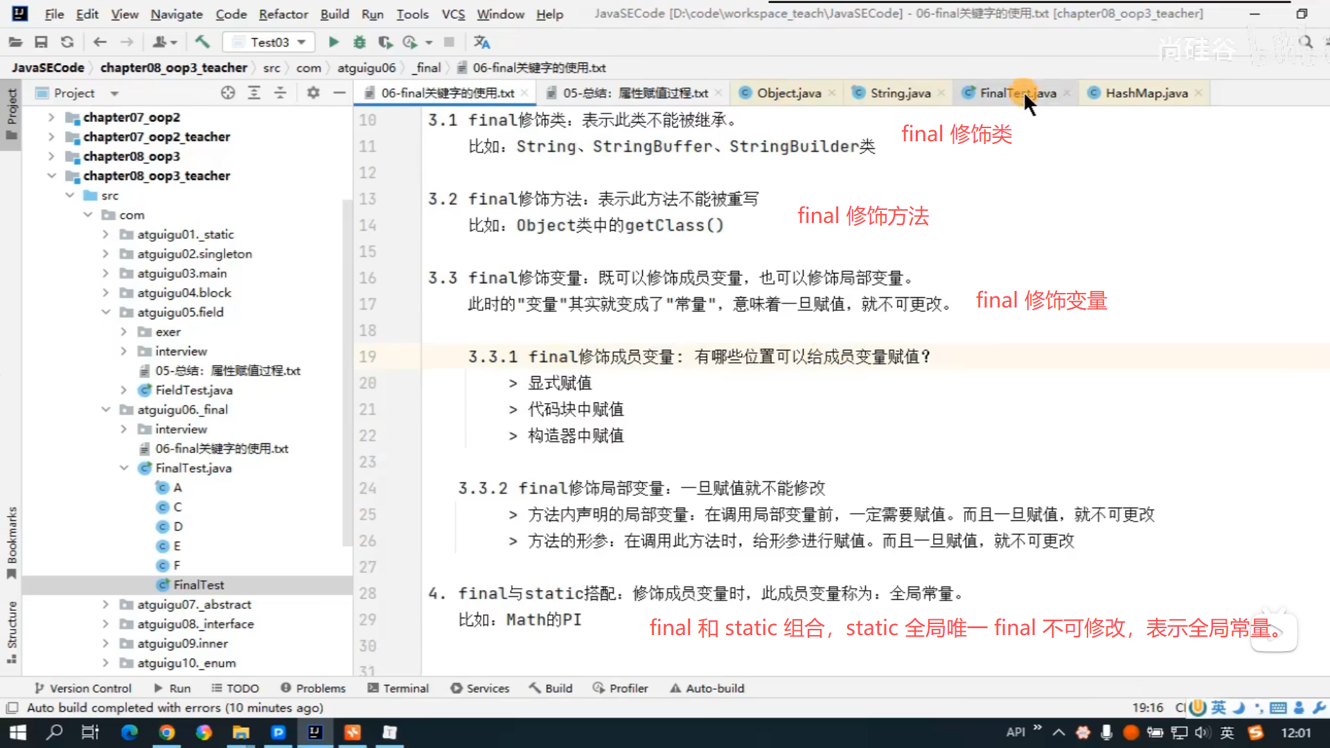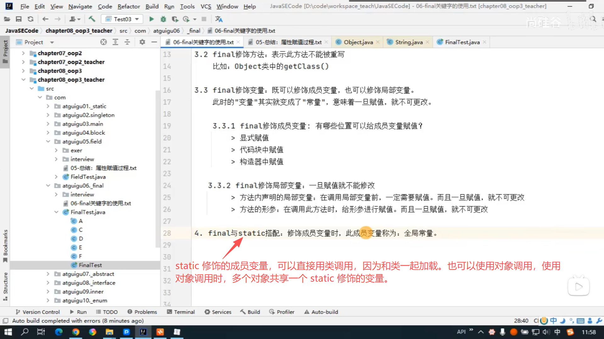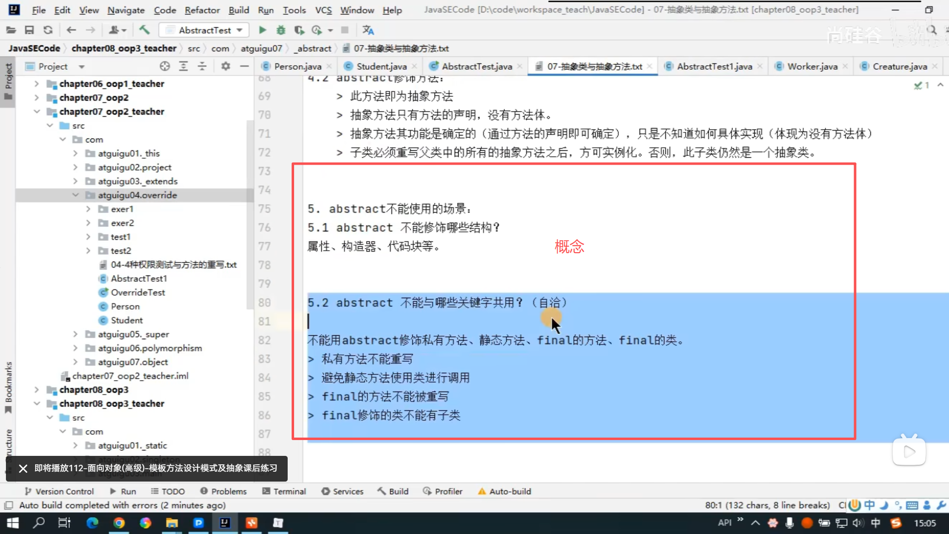Java 零基础全套视频教程,面向对象(高级),笔记 105-123