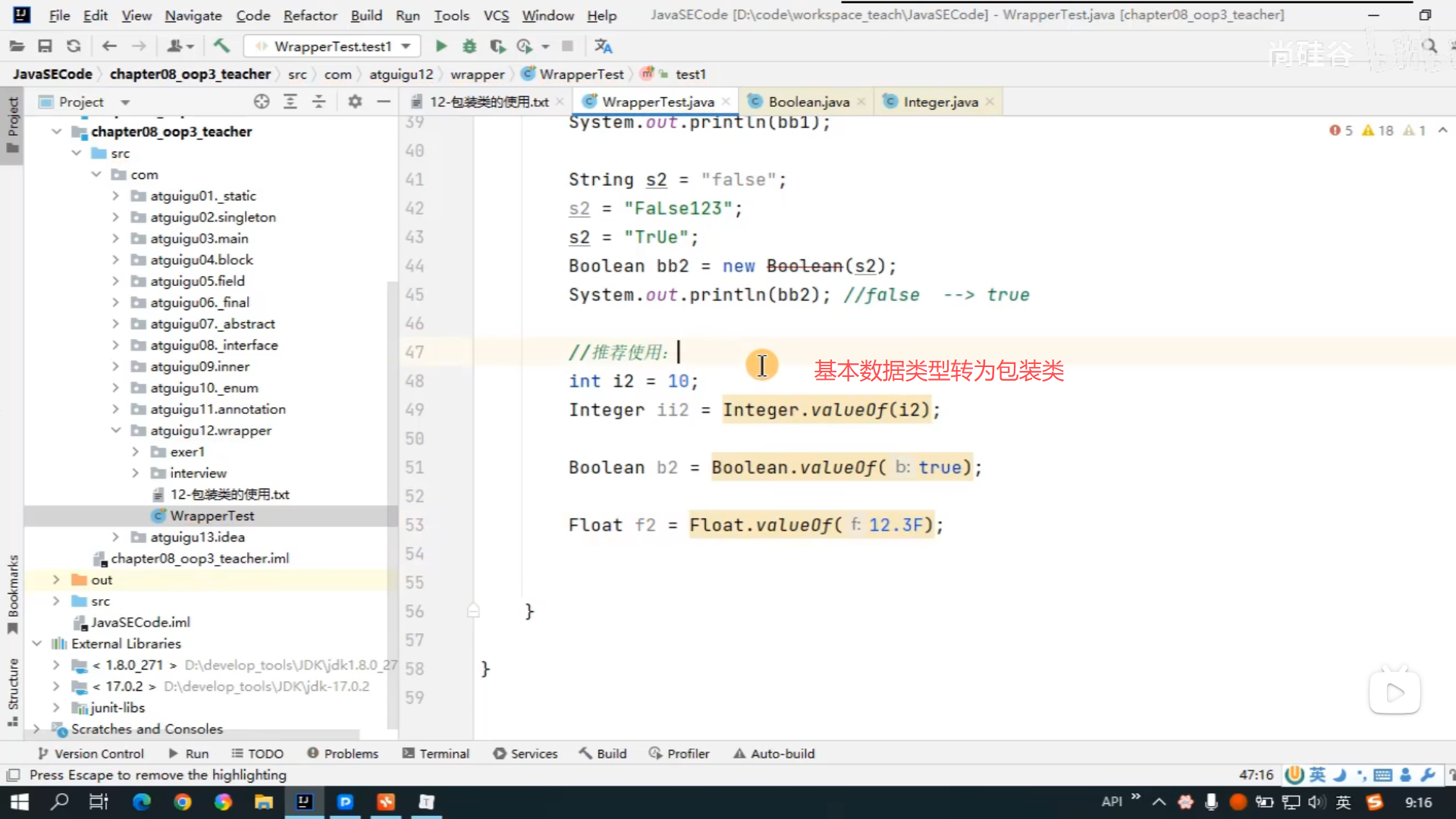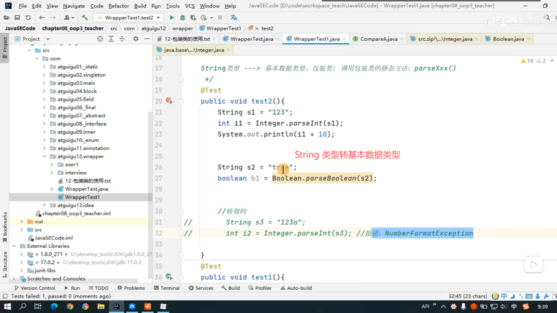 120、String 与基本数据类型、包装类间的转换