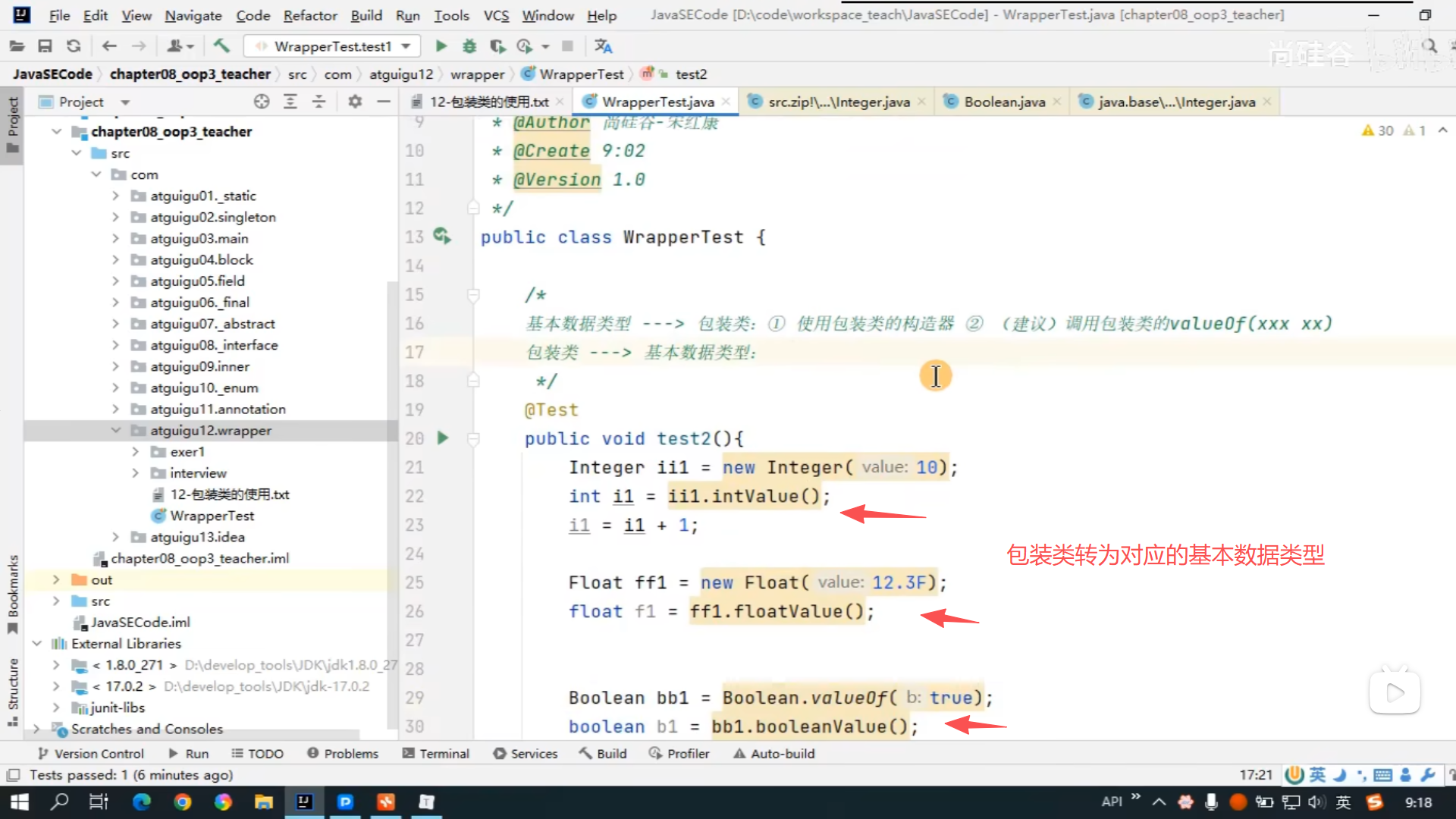 119、包装类的理解,基本数据类型与包装类间的转换
