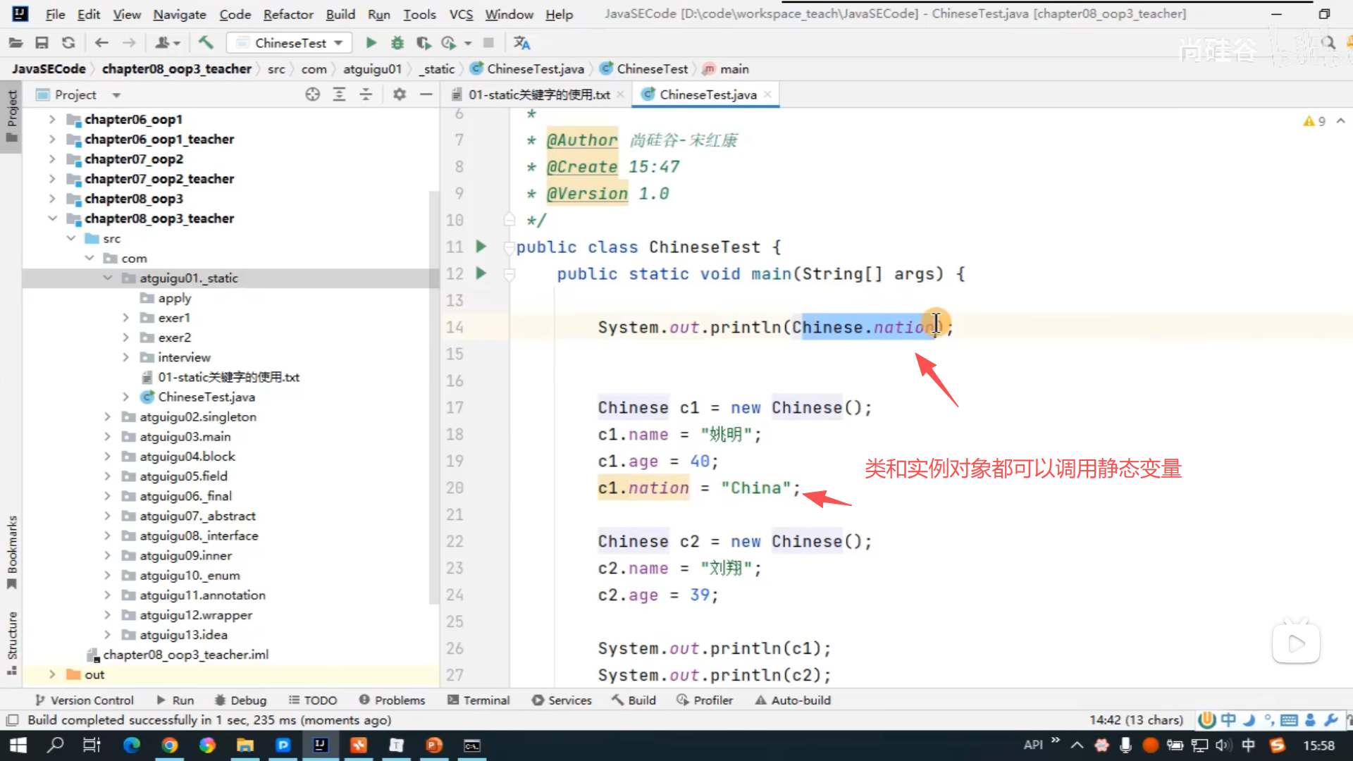 106、static 的应用举例及练习 1 2