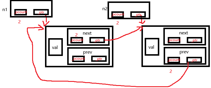 - 释放n2->_ptr 需要先释放 n2->_ptr->prev->_ptr