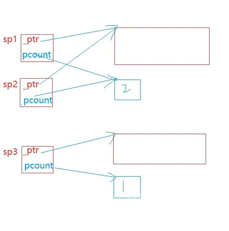 - 使用wdz::shared_ptr<int> sp3(sp1)构造,然后 sp3 = sp1 ,虽然是不同对象,但也算自己给自己赋值,所以不用 this != &sp 判断,我们可以用 _ptr 判断,或者 _pcount 判断。我这里是使用的_ptr。