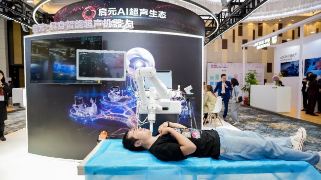本次大会,迈瑞携启元AI超声生态下的启元·安贞心宇大模型、启元腹部超声大模型、启元妇产超声大模型、启元乳腺超声大模型和启元 · 具身智能超声机器人来到现场为来宾们展示启元AI超声生态的落地应用。