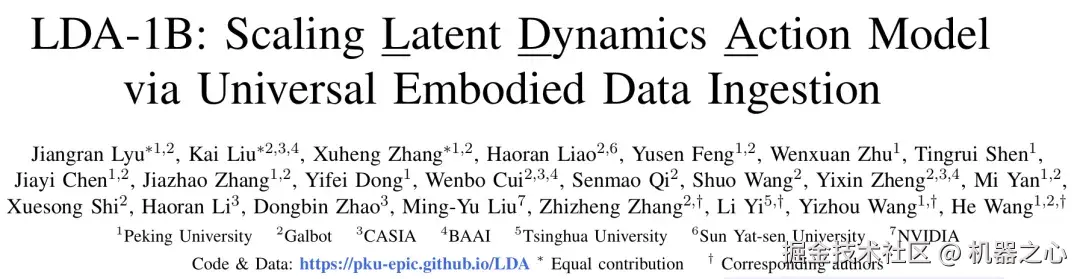 论文标题:LDA-1B: Scaling Latent Dynamics Action Model via Universal Embodied Data Ingestion